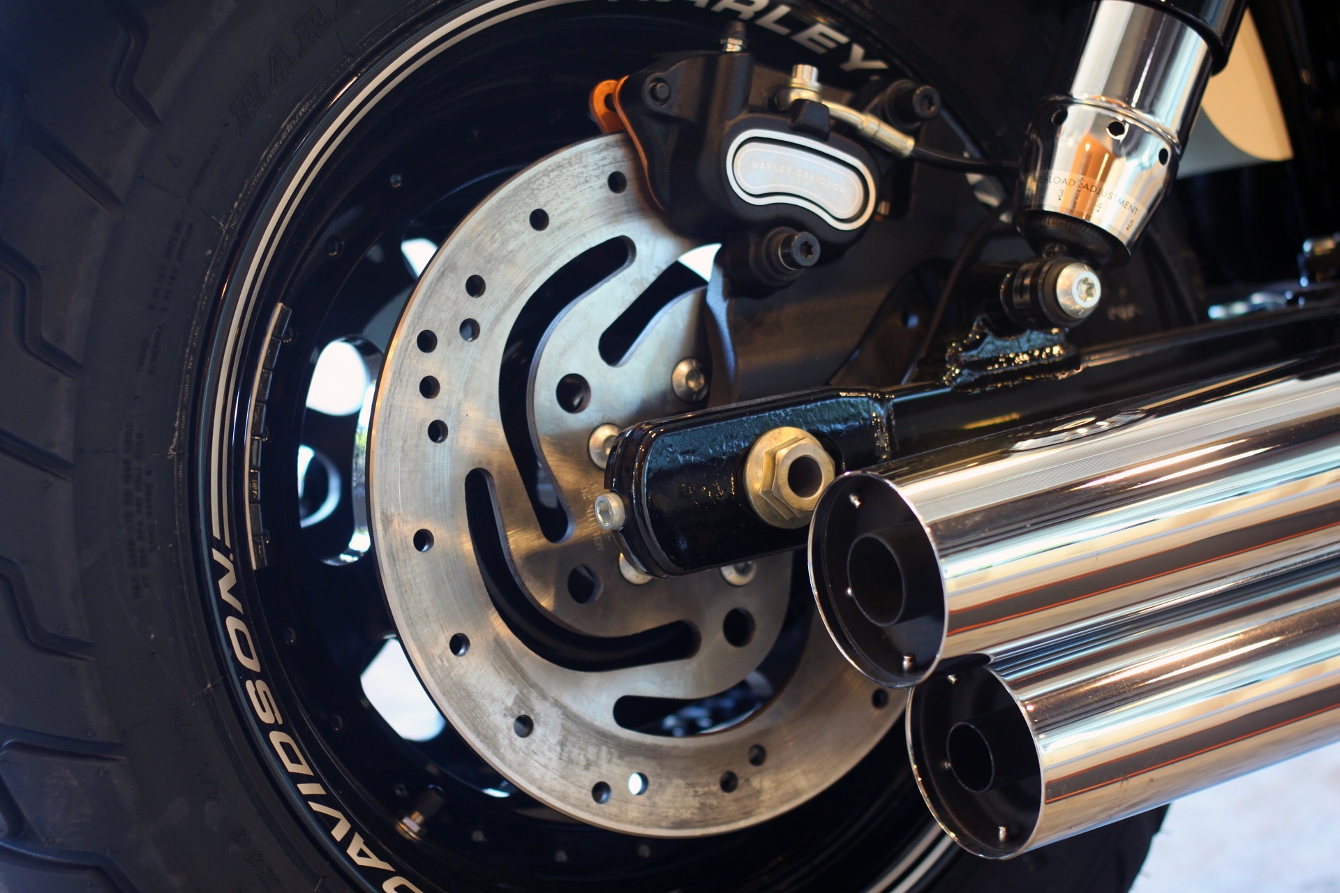 Vành xe gia công và sơn đen, được khắc laser dòng chữ  "Harley-Davidson" xung quanh mép.