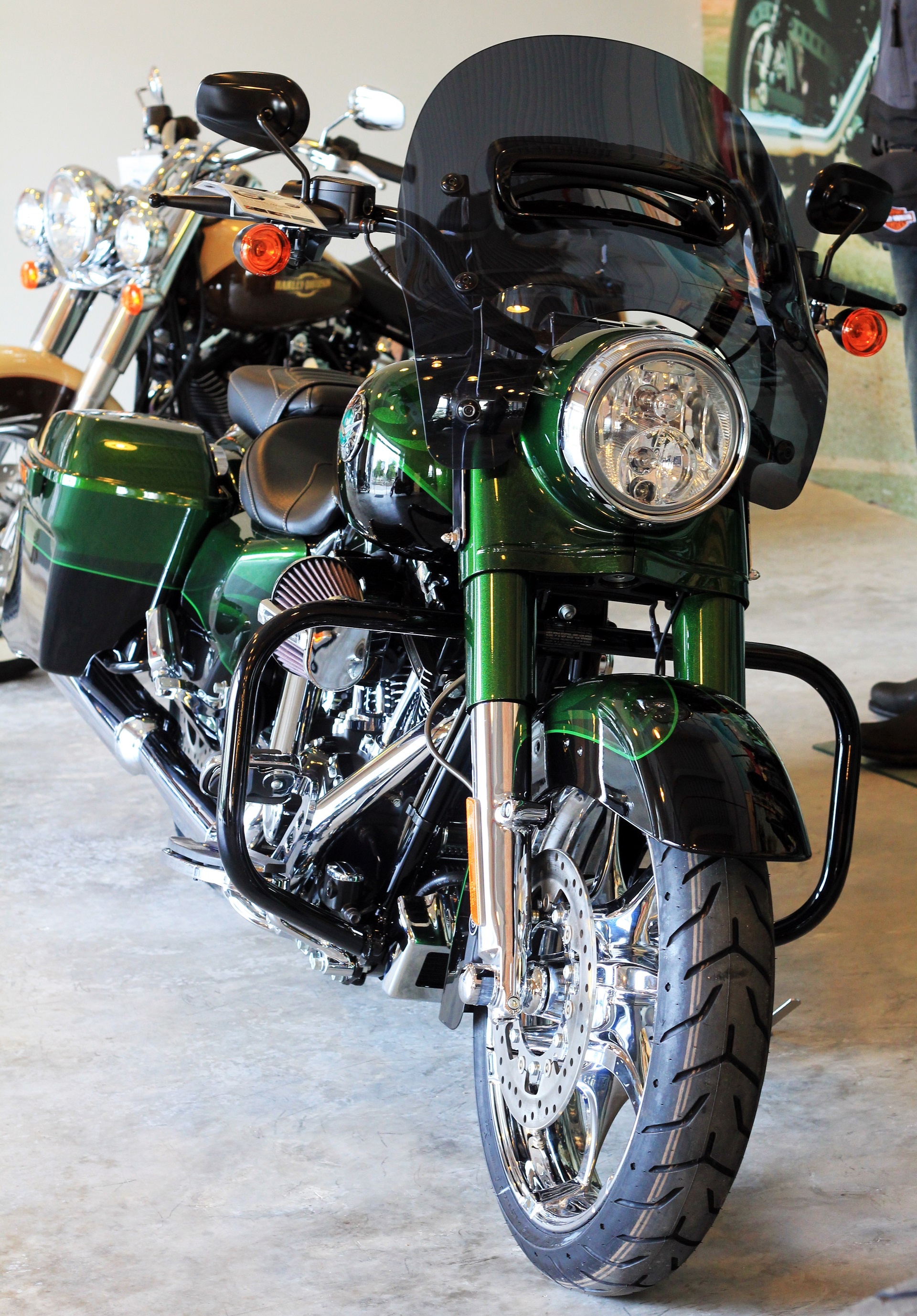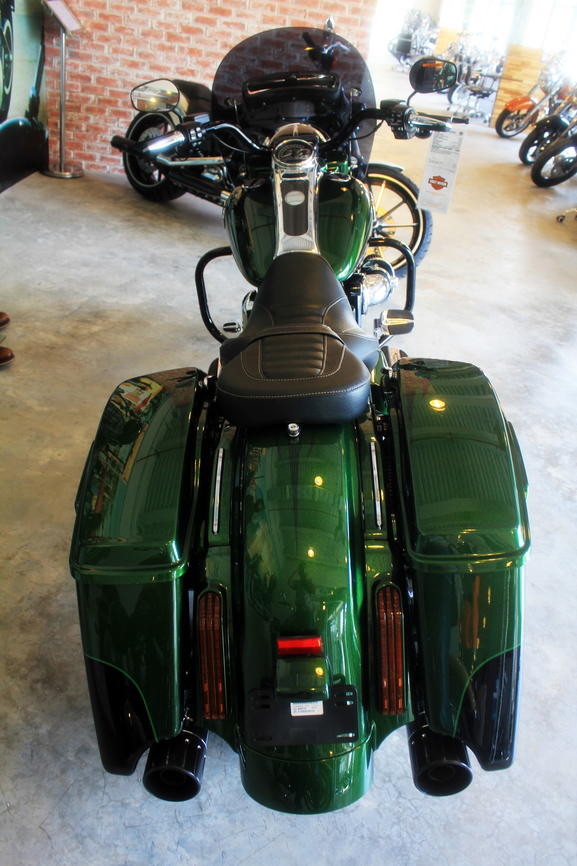 Đối với những người vừa muốn một chiếc mô tô phong cách cổ điển nhưng vẫn giữ được sự thoải mái trên những chặng đường dài thì Road King là lựa chọn hàng đầu. Chiếc CVO Road King FLHRSE đời 2014 đang có mặt tại Việt Nam được sơn màu xanh két khá độc đáo.