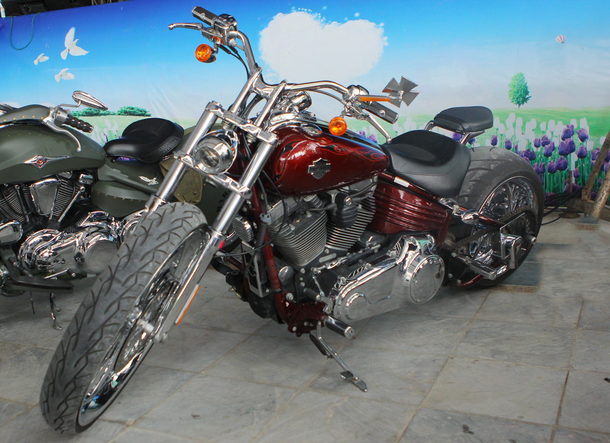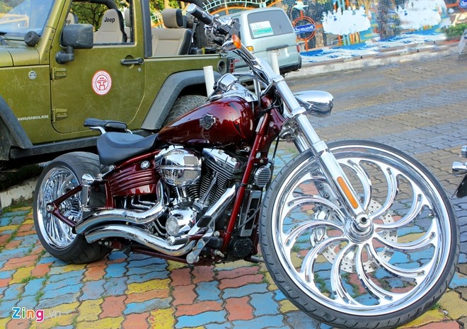 Chiếc Harley-Davidson Rocker C của một biker Hà thành nổi bật với cặp vành hơn 6.000 USD, trong đó, vành trước được cho có chu vi lớn nhất trang bị cho một mẫu mô tô ở Việt Nam.