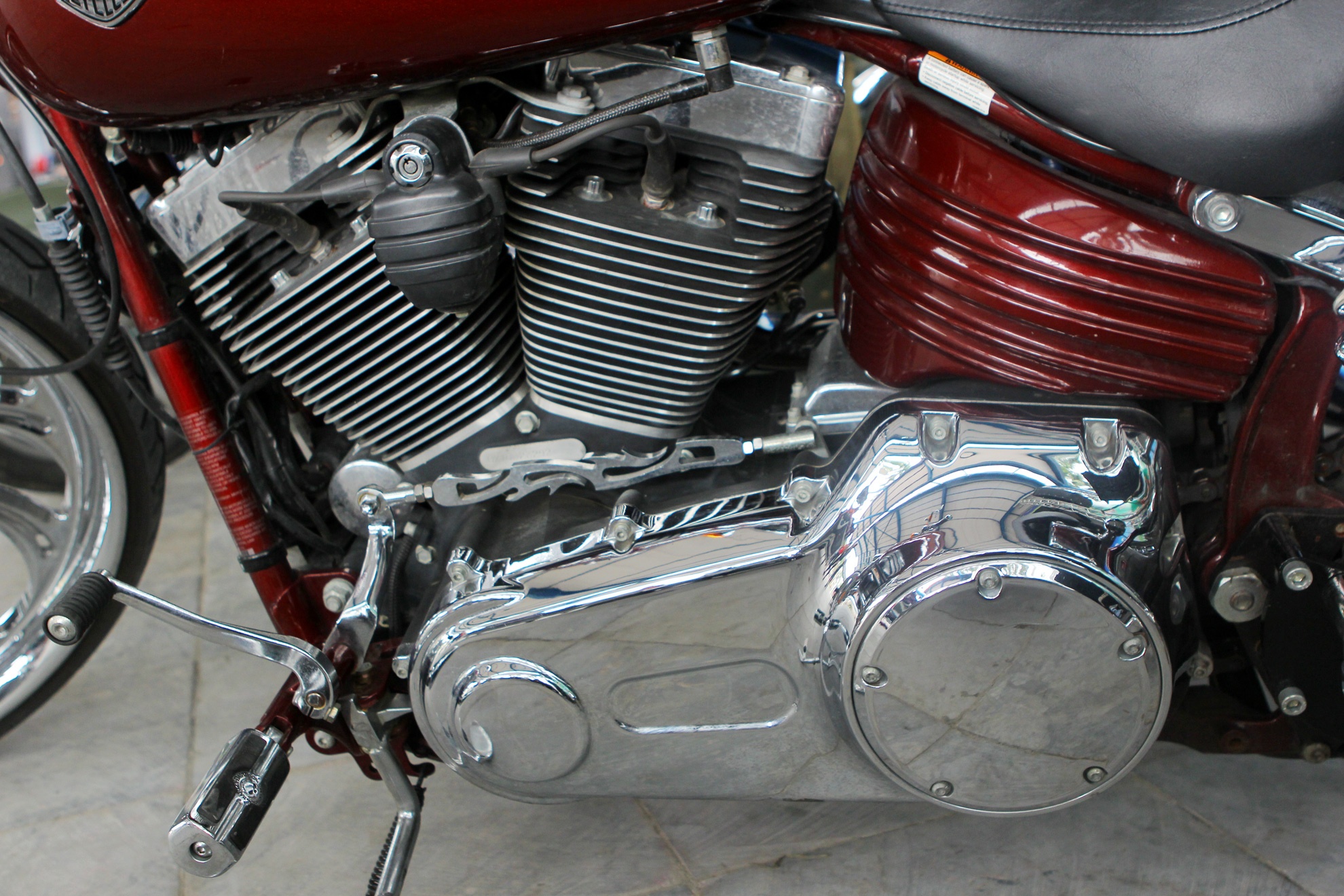 | Theo biker Nguyễn Tiến Dũng, chủ sở hữu chiếc xe, nguyên bản chiếc Harley-Davidson Rocker C này đã là một "gã điển trai" nhưng kiểu dáng lại không mạnh mẽ, nam tính. Chính vì thế, nó đã được độ lại bộ vành và một số chi tiết nhỏ khác để tạo sự cơ bắp. |