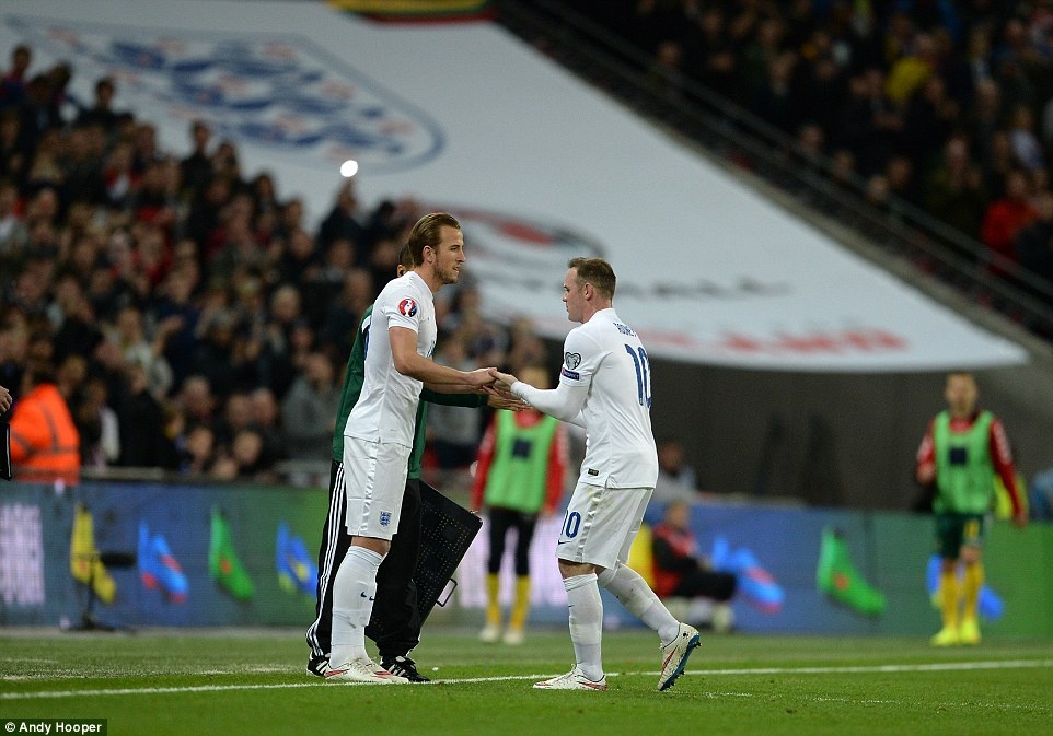 | Phút 71 trận đấu giữa tuyển Anh và Lithuania đánh dấu sự kiện trọng đại dành cho Harry Kane khi anh vào thay Wayne Rooney. Đây là lần đầu tiên chân sút 21 tuổi khoác lên mình màu áo "Tam sư". |