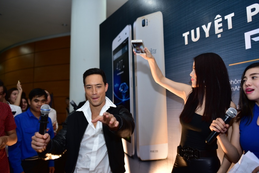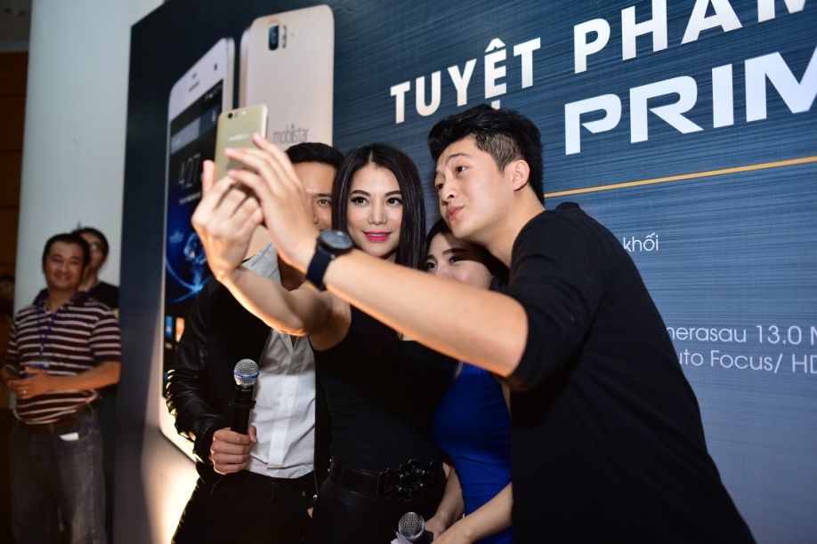 | Harry Lu và cặp đôi mới của màn ảnh Việt cùng thích thú tự sướng khi được giới thiệu về tính năng camera của sản phẩm PRIME 558. Tham gia trải nghiệm điện thoại này, các bạn không chỉ được giao lưu cùng những ngôi sao của bộ phim Hương Ga, mà còn được nhận rất nhiều quà tặng hấp dẫn từ Mobiistar. |
