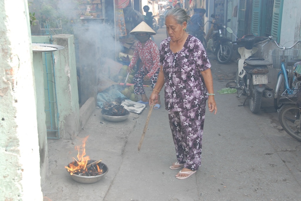 Tại lễ Tống phong diễn ra ở Xóm Chài, người dân đốt muối và gạo trong 3 ngày ở trước nhà để tống đi những điều xui rủi, rước cái may mắn vào nhà.