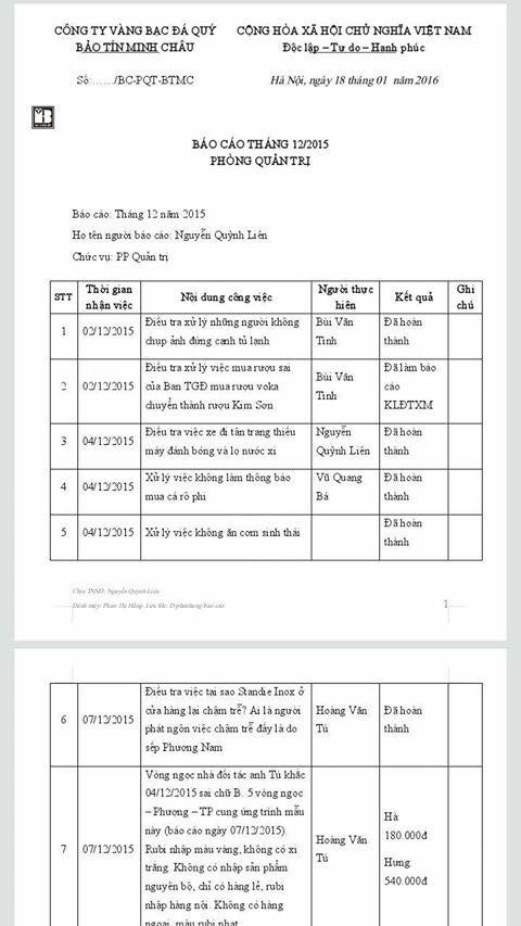 Trước đó, trên Facebook A.X.T có đăng tải hình ảnh báo cáo được cho là của Phòng Quản trị, BTMC ngày 18/1 về việc điều tra, xử lý, cho nghỉ việc hơn 100 nhân viên để trốn thưởng Tết.
