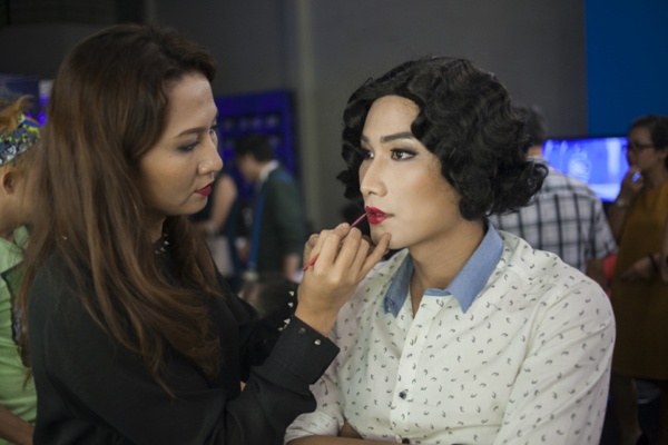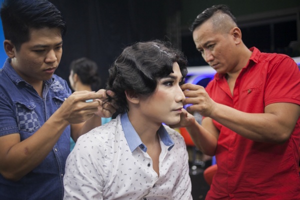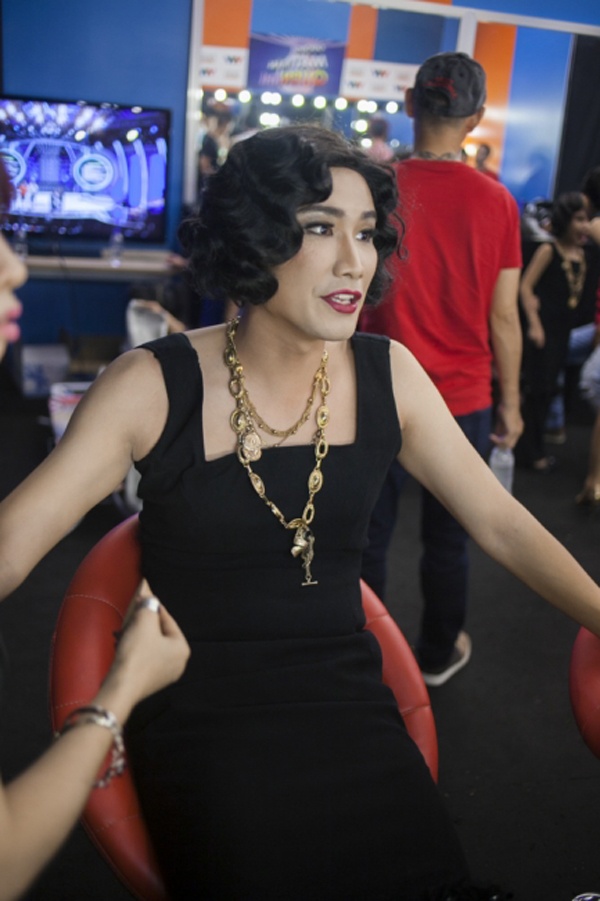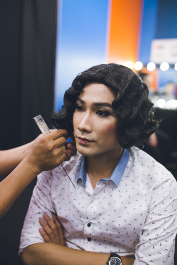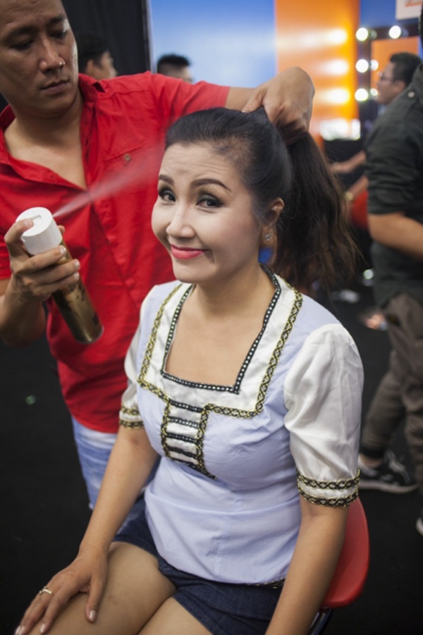 | Ý Lan là một ca sĩ rất nữ tính và điệu nên Chí Thiện mất rất nhiều thời gian để các chuyên viên hoá trang làm tóc, make up. |