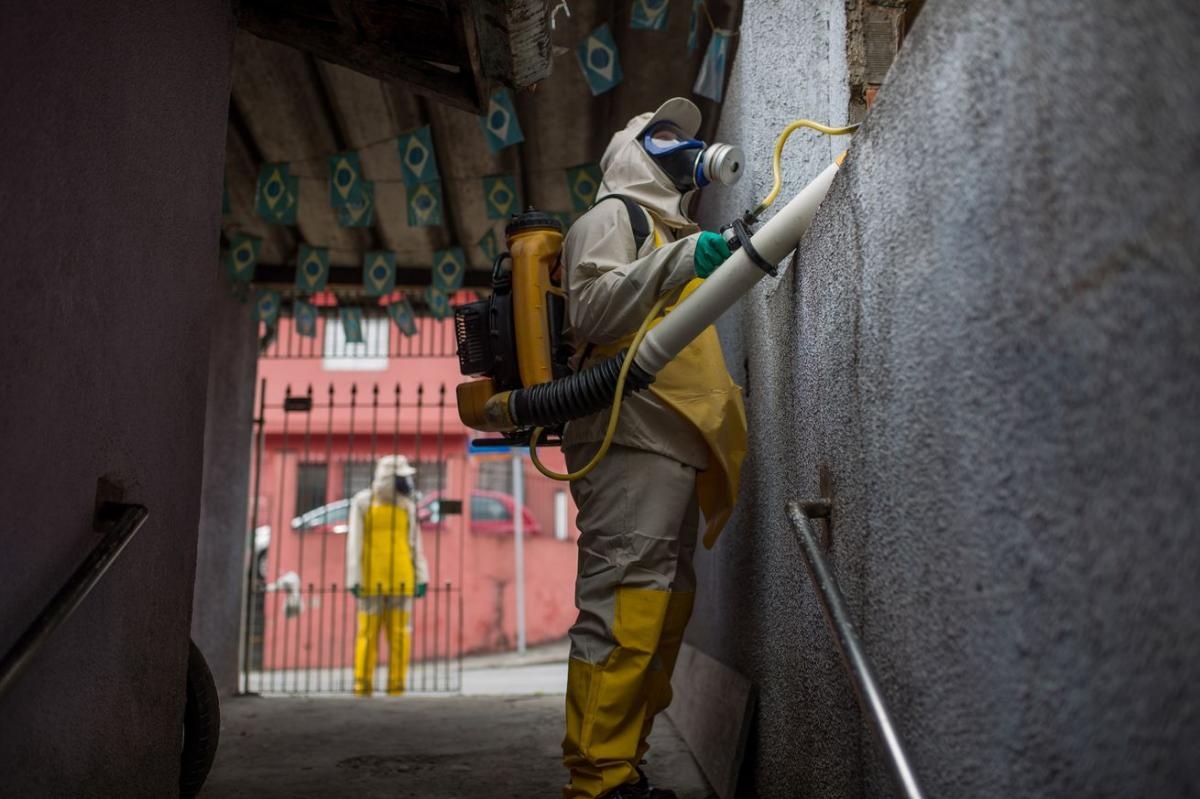 | Nhân viên y tế phun thuốc diệt muỗi để ngăn dịch sốt xuất huyết và virus Zika bùng phát. Ảnh: AFP |