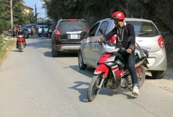 Đi bộ một đoạn ngắn mà chúng tôi phải năm lần, bảy lượt ngoái lại phía sau để nhường chỗ cho xe máy và ôtô phóng qua, kèm theo đó là khói bụi vây chặt lấy.