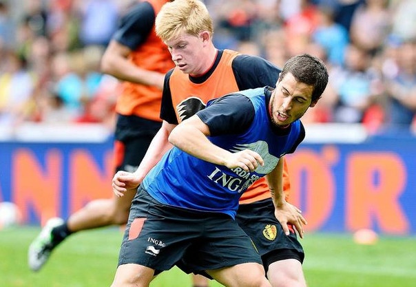 | Nhờ phong độ ấn tượng, cả De Bruyne và Hazard đều có tên trong thành phần tuyển Bỉ tham dự loạt trận vòng loại EURO 2016 diễn ra cuối tuần này. Ảnh: Yahoo Sports. |