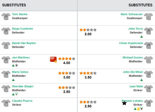 | Cầu thủ dự bị của Bayern và Chelsea. |