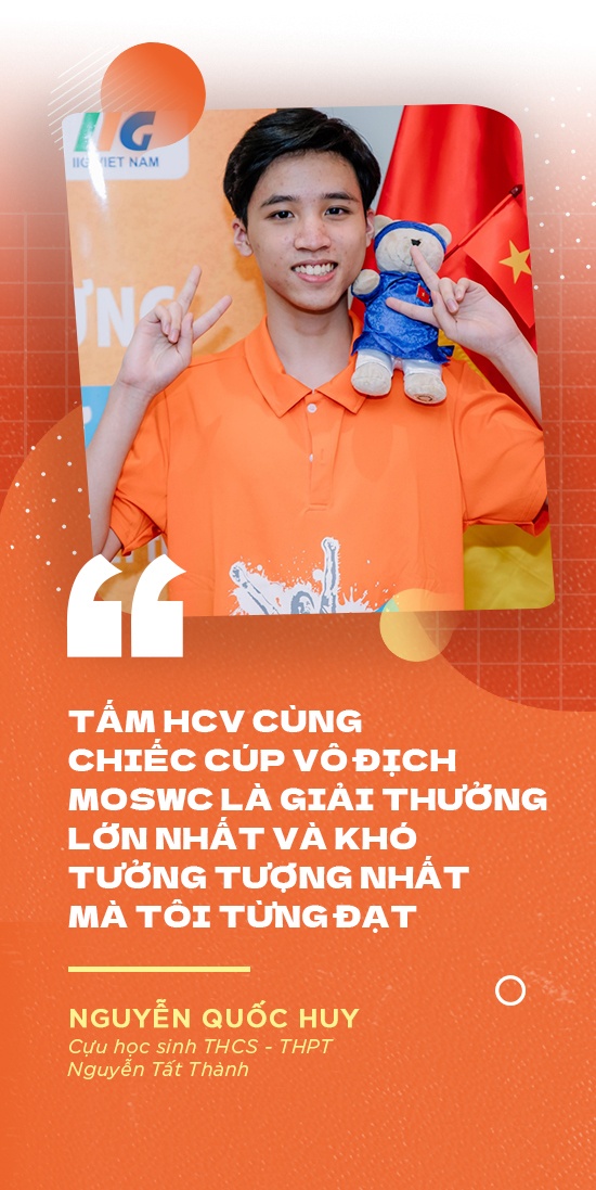 “Tấm HCV cùng chiếc cúp vô địch MOSWC là giải thưởng lớn nhất và khó tưởng tượng nhất mà tôi từng đạt”, Nguyễn Quốc Huy vẹn nguyên cảm xúc khi nhớ lại khoảnh khắc được xướng tên ở ngôi vị đầu.