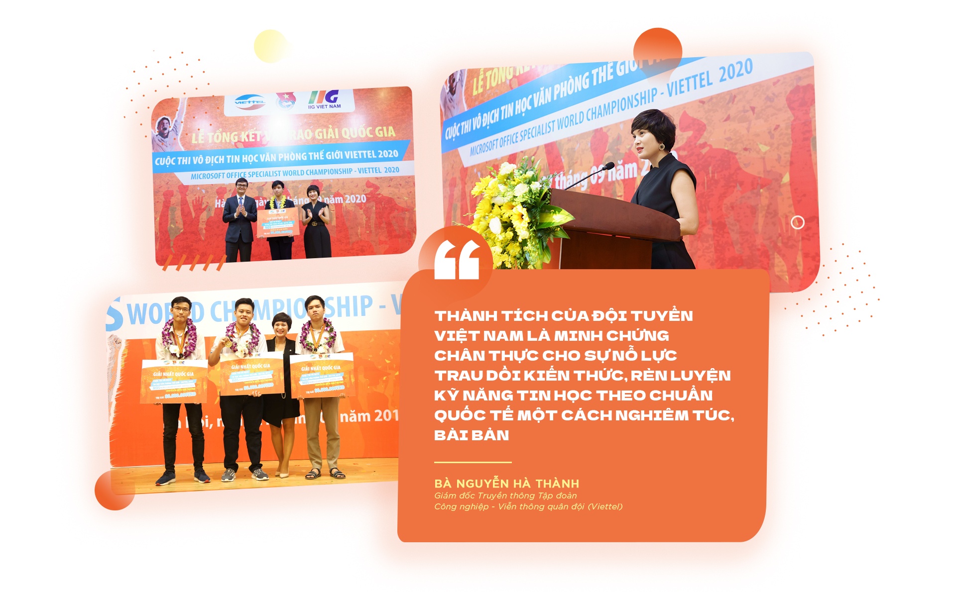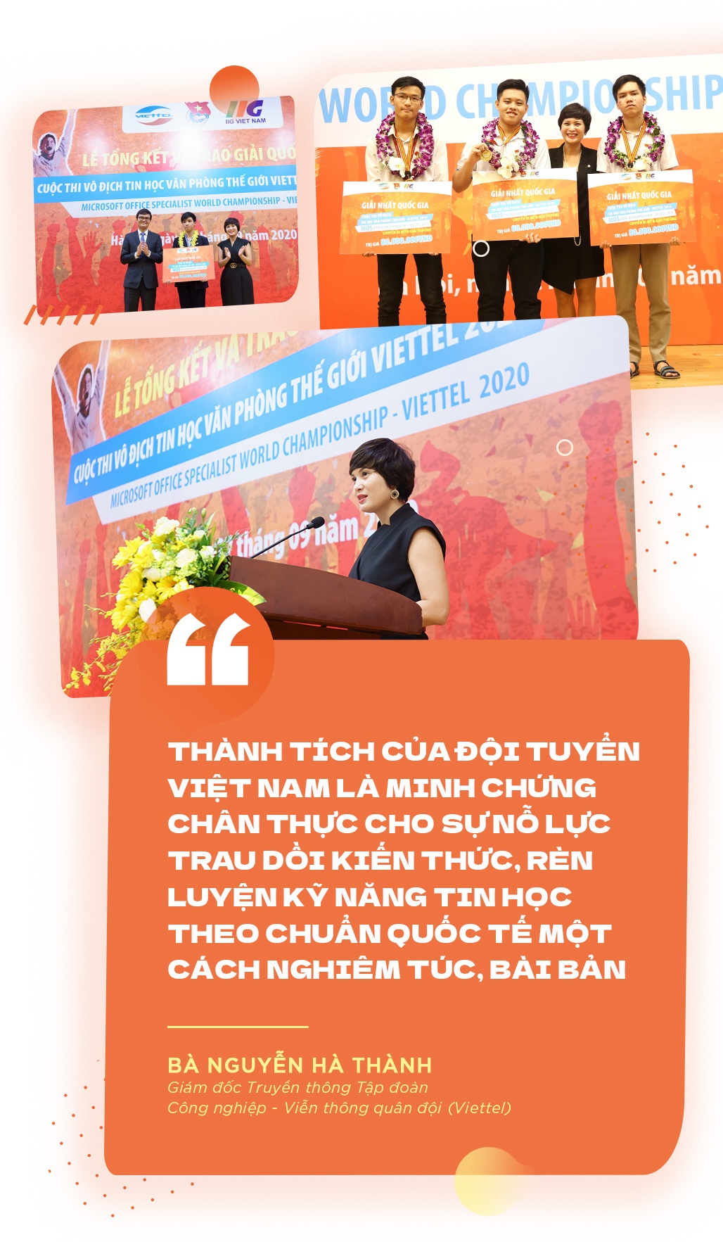 “Thành tích của đội tuyển Việt Nam là minh chứng chân thực cho sự nỗ lực trau dồi kiến thức, rèn luyện kỹ năng tin học theo chuẩn quốc tế một cách nghiêm túc, bài bản. Tôi hy vọng những trải nghiệm quý báu cùng kết quả cao tiếp thêm động lực để khi bước ra khỏi cuộc thi, các em tiếp tục phát huy tinh thần, bản lĩnh vững vàng”, bà Nguyễn Hà Thành tự hào trước “quả ngọt” mà các bạn trẻ đã gặt hái.