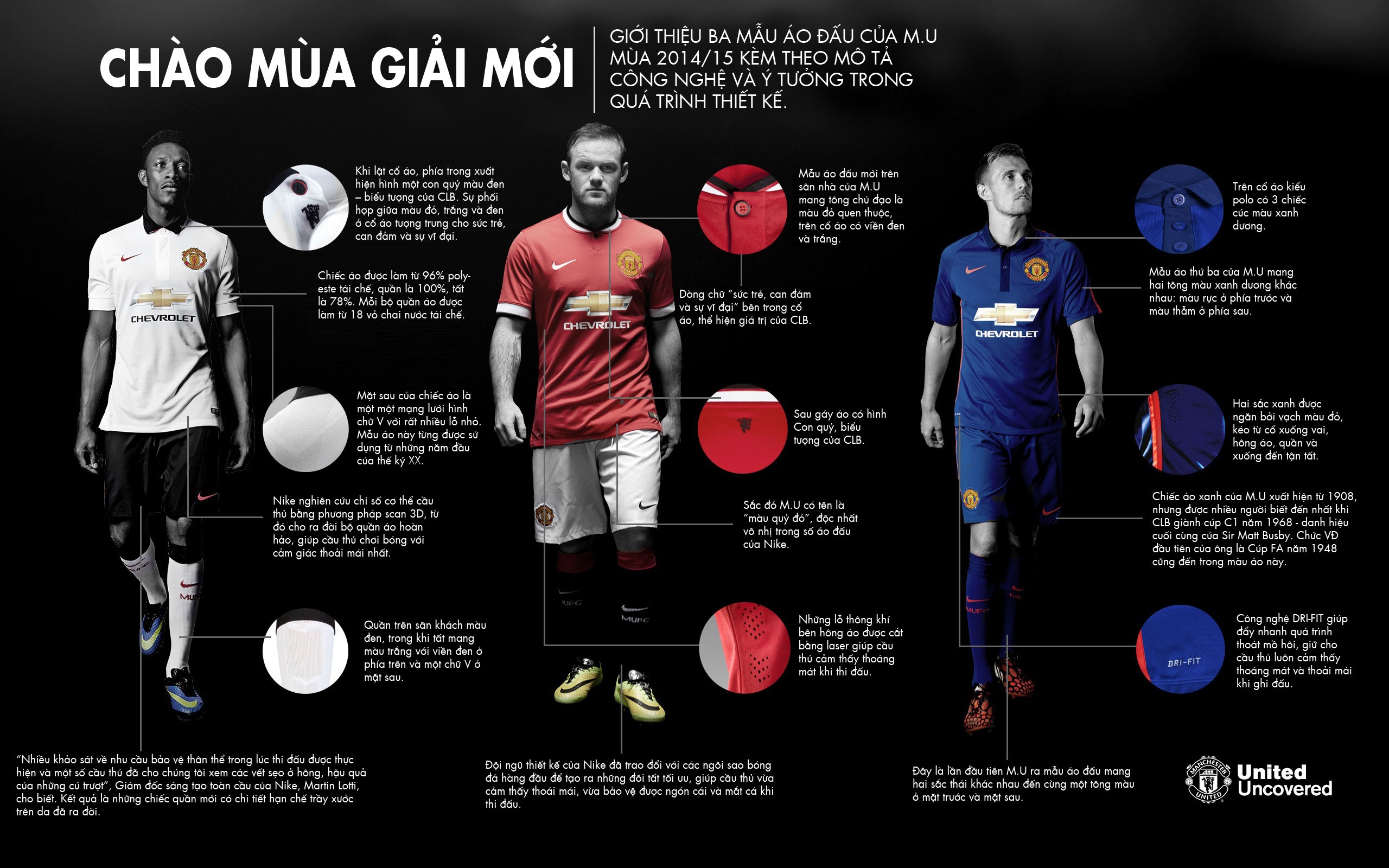 Trên trang chủ CLB, M.U vừa mô tả chi tiết công nghệ và ý tưởng trong quá trình thiết kế 3 mẫu áo đấu mùa giải 2014/15.