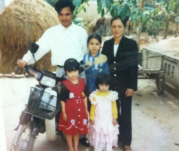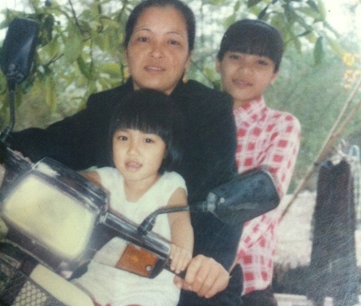 | Ảnh ngày bé đáng yêu của Hòa bên mẹ và chị gái. |