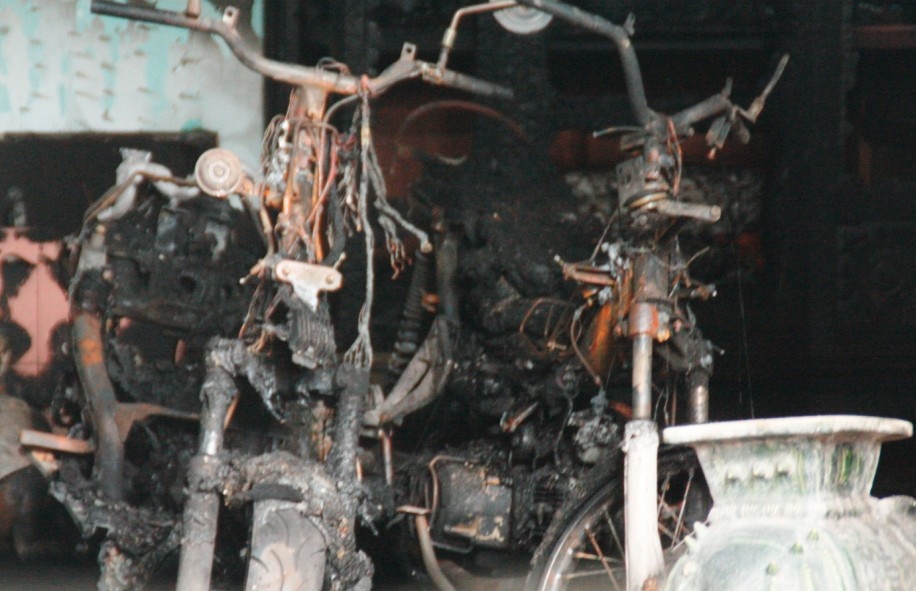 | 5 chiếc xe máy dựng trong nhà đã cháy rụi hoàn toàn |