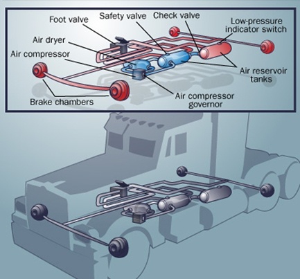 | Sơ đồ cấu tạo một hệ thống phanh khí. Ảnh: Wikipedia. |