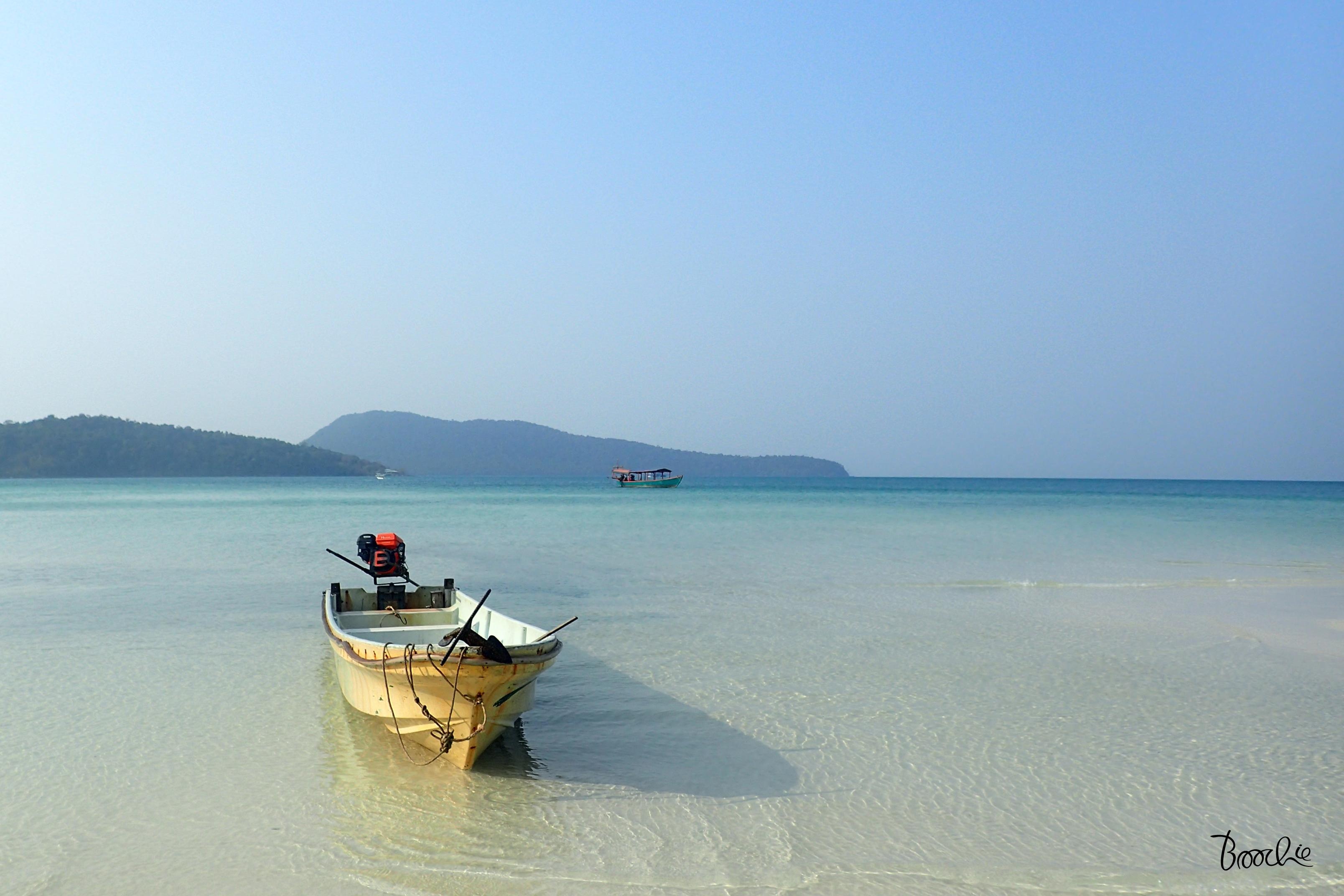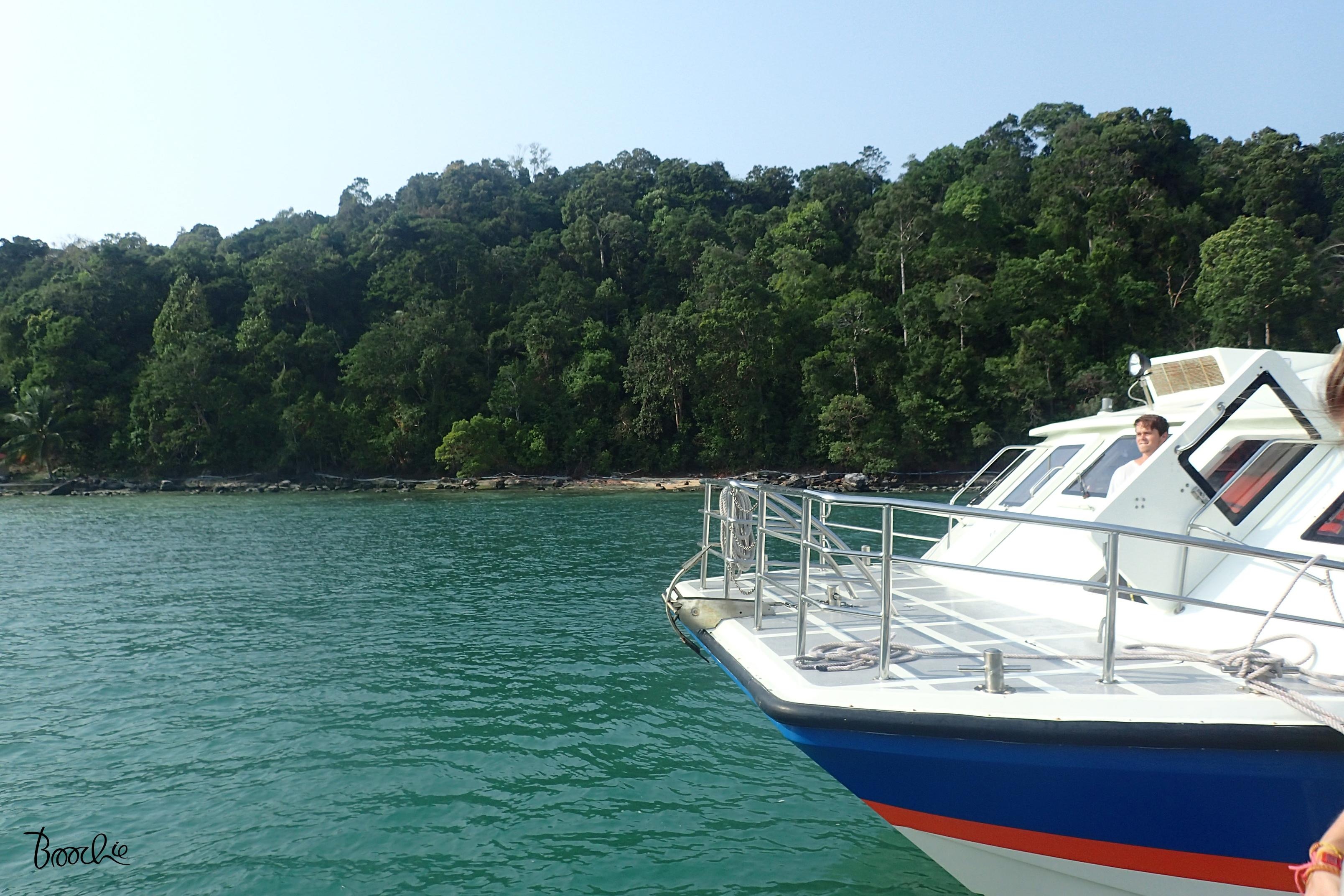 Mất khoảng 40 phút ngồi trong khoang, tàu phóng nhanh vun vút, xé nuớc đưa đoàn khách đến với Koh Rong Samloem. Và rồi, những mệt mỏi, nóng bức lập tức tan biến theo bọt sóng, chúng tôi chạm tới đảo ngọc, say lòng truớc màu xanh mát dịu và yên bình.