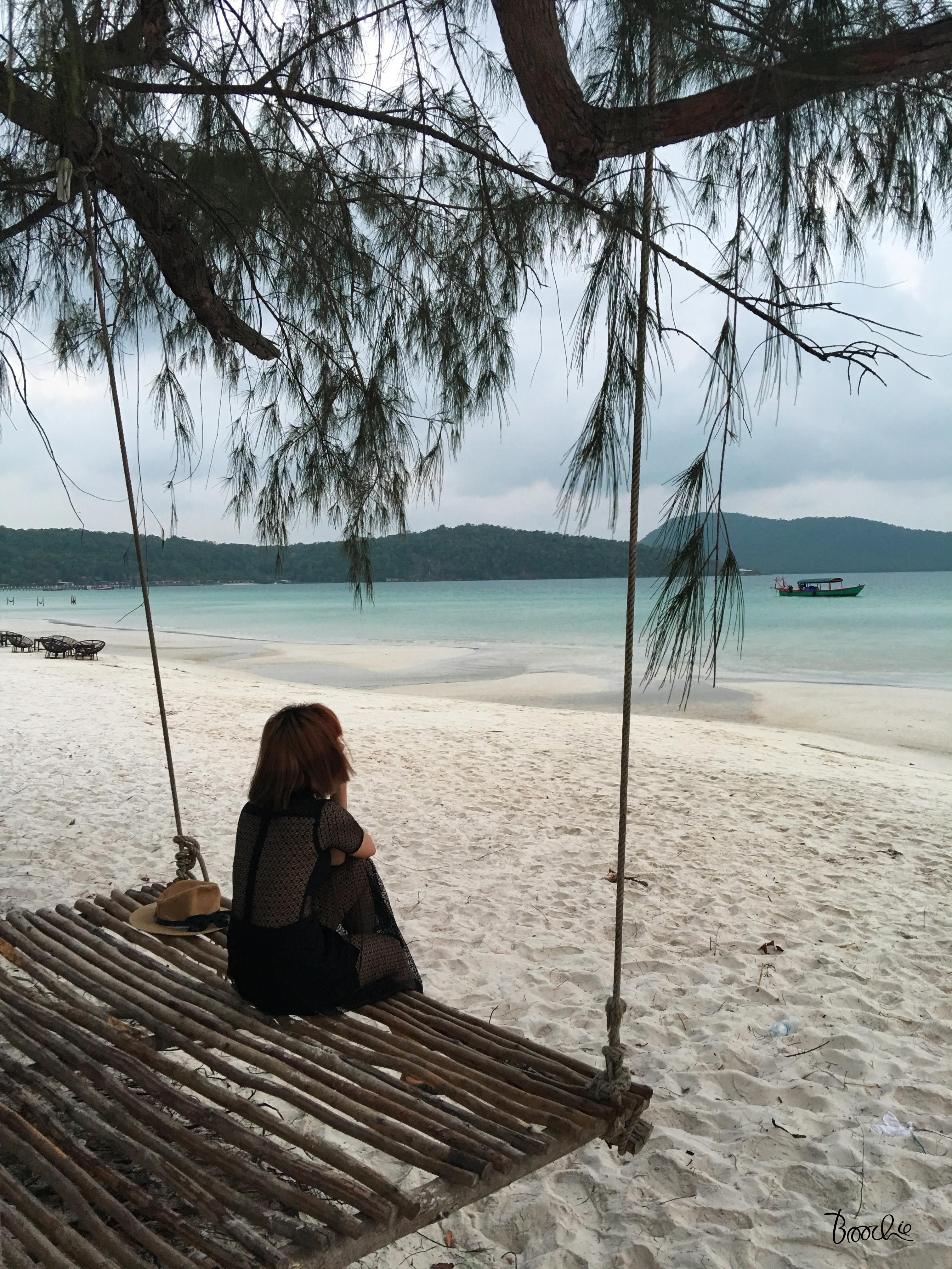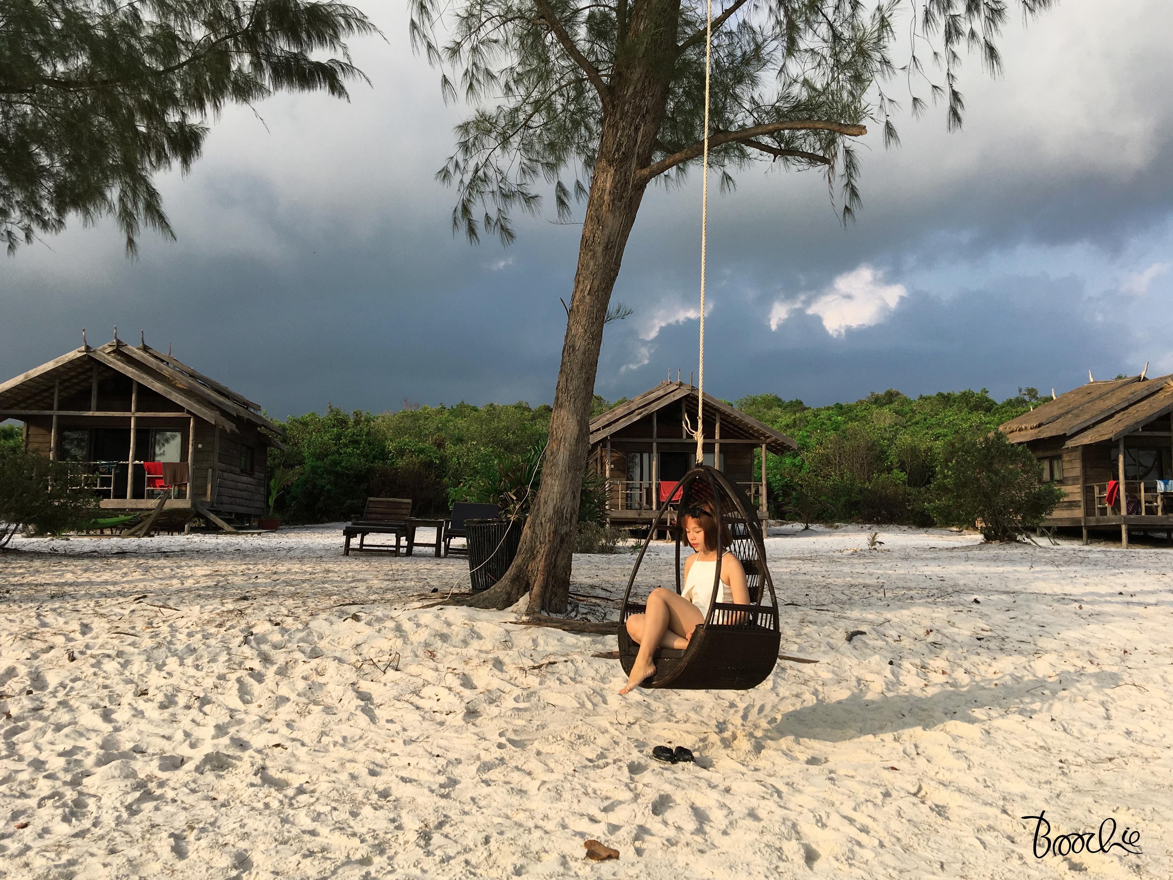 Bãi cát dài trắng mịn, những tán cây và những chiếc xích đu dây treo đặc sản...