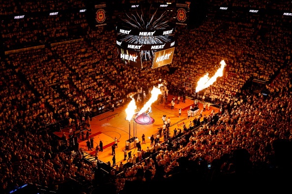 | Nhà thi đấu American Airlines nổi lửa chờ đón đội khách Indiana Pacers. |