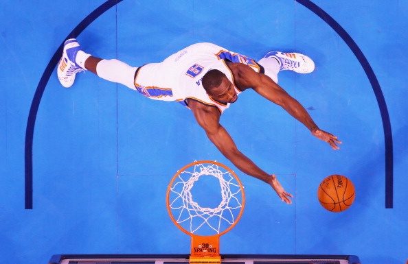 | Sự quyết tâm giúp đội chủ nhà nhập cuộc rất tốt. Phong độ ổn định của cặp đôi Rusell Westbrook và Kevin Durant tiếp tục mang về những điểm số quan trọng cho đội bóng của HLV Scott Brooks. Trước khi bước vào giờ nghỉ giữa hiệp 2 và 3, Thunder tạm vươn lên dẫn với cách biệt 7 điểm (49-42). |