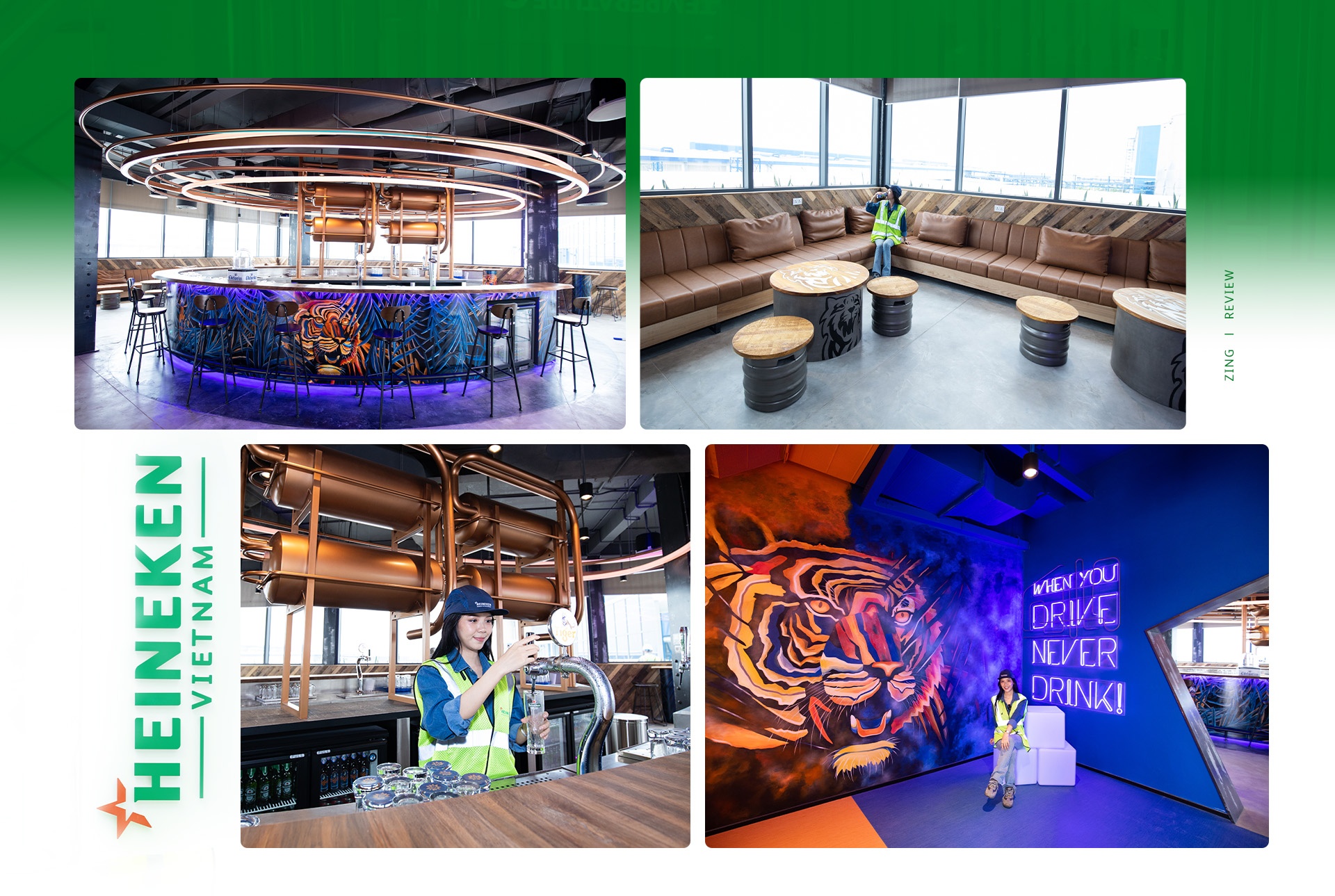 Cuối ngày, chúng tôi ghé thăm rooftop bar, nơi nhân viên thư giãn, nghỉ ngơi sau giờ làm. Nơi đây đặt một quầy bar với thiết kế hiện đại, tủ bia gồm các sản phẩm của Heineken Việt Nam và nhiều bàn ghế phù hợp để check-in. Không cần đi đâu xa, những khoảnh khắc “chill” nhất trong ngày có thể được tìm thấy ngay tại nơi làm việc quen thuộc.