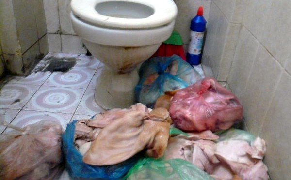 Nguyên liệu làm nem tai vứt cạnh bồn cầu