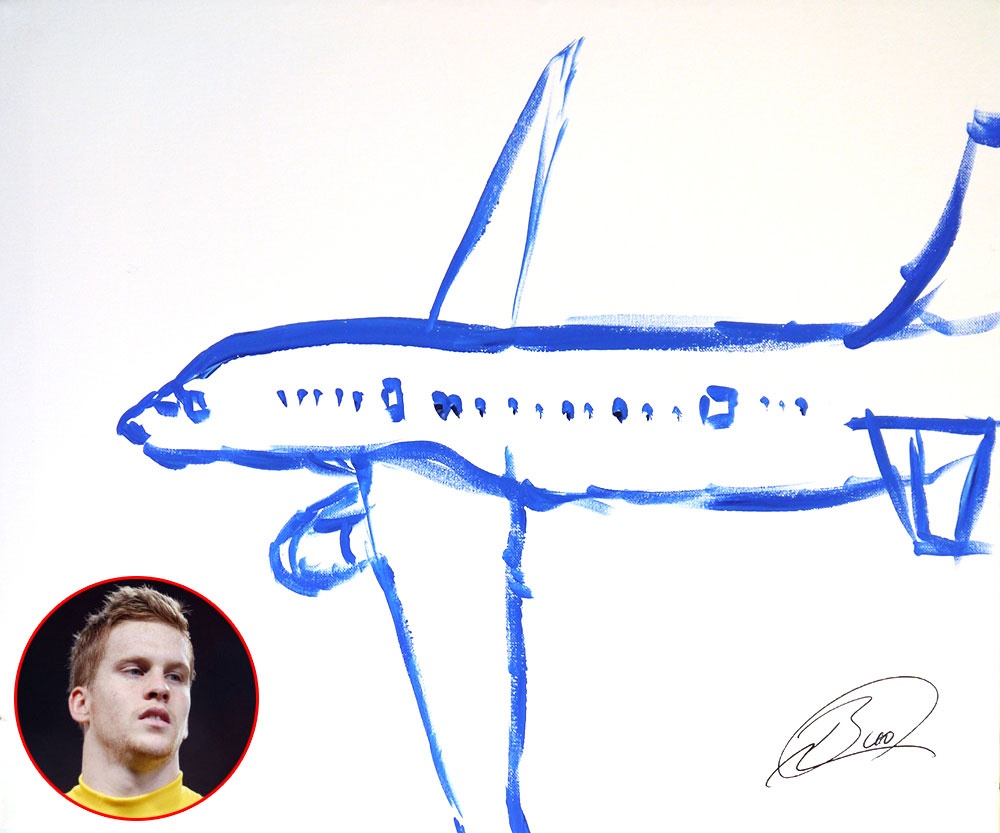 | Chiếc máy bay được phác họa bởi thủ môn Ben Amos khá giống hình con cá. |