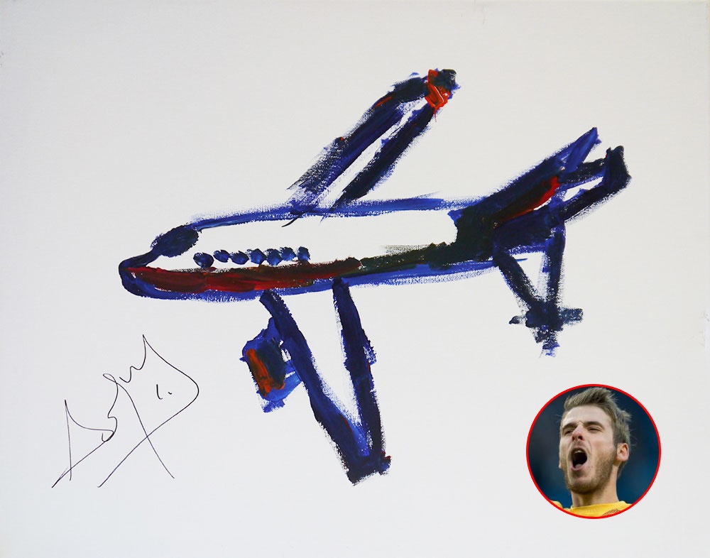 | Chiếc máy bay dưới nét vẽ của David De Gea. |