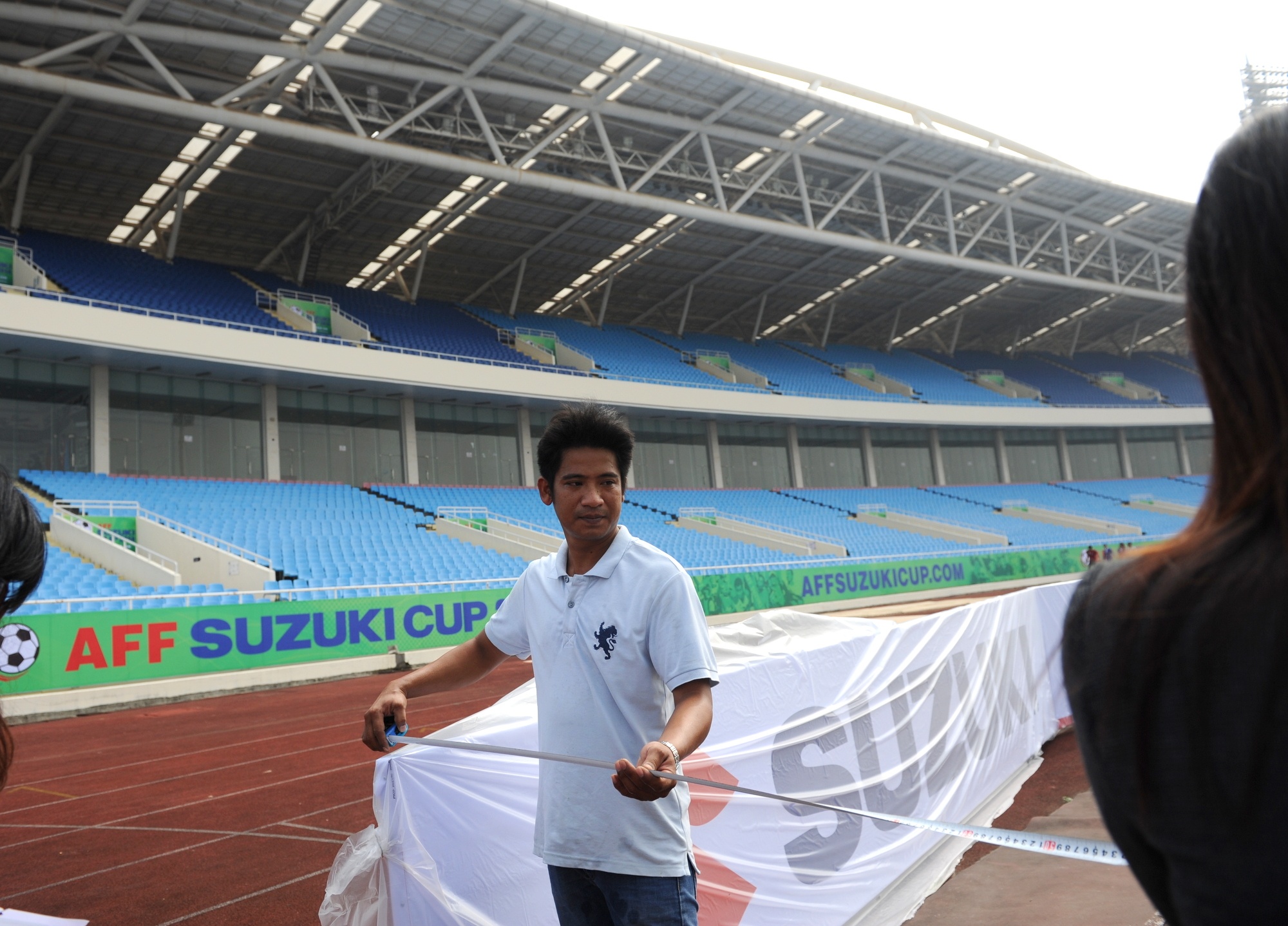 | Bên trong SVĐ Quốc gia, những khâu chuẩn bị cuối cùng đang được BTC gấp rút hoàn thiện chuẩn bị cho trận đấu khai mạc diễn ra chiều nay (22/11). |