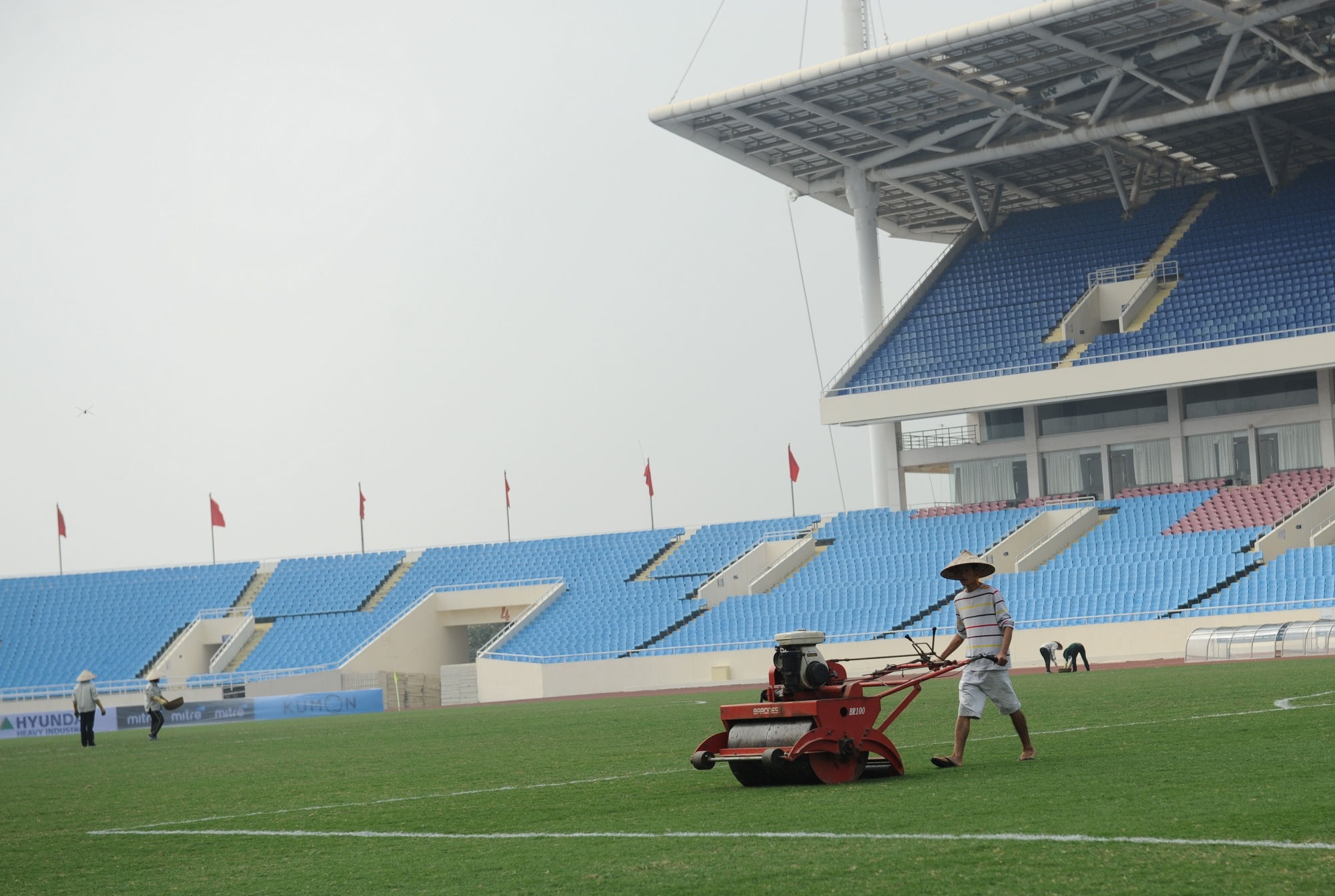 | Mặt cỏ sân Mỹ Đình được chăm sóc kỹ lưỡng trước khi diễn ra 2 trận đấu khai mạc giải AFF Cup 2014. |