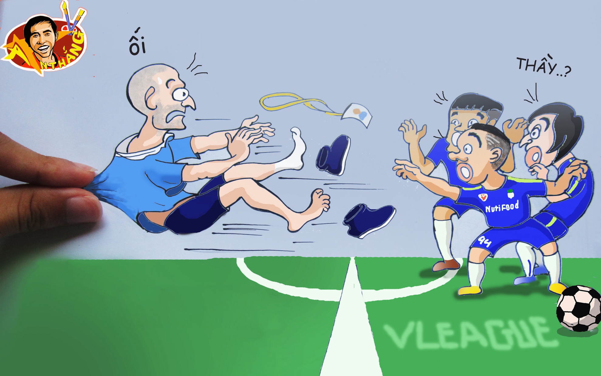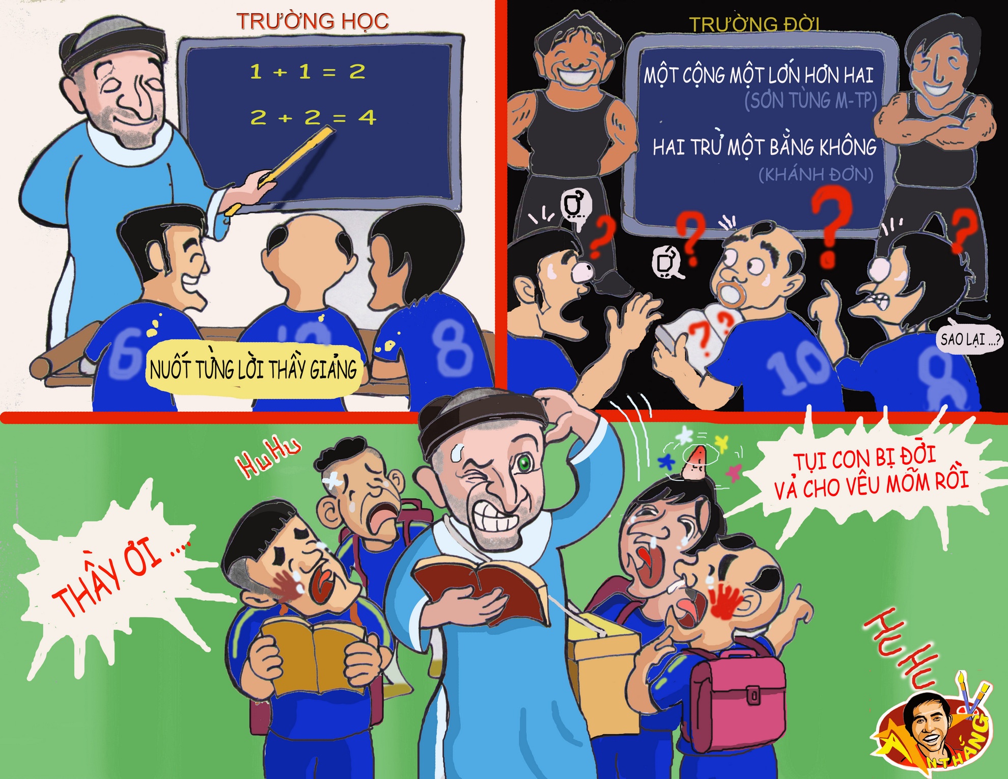 Hí họa: Bầu Đức nhấc bổng thầy Giôm về gõ đầu trẻ