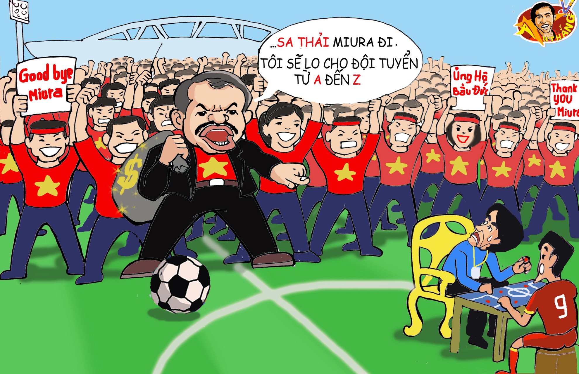 | Đỉnh điểm của làn sóng phản đối HLV Miura là tuyên bố của bầu Đức. Trên cương vị Phó chủ tịch VFF, bầu Đức tuyên bố: "Muốn bóng đá Việt Nam phát triển lên một tầm cao mới, trước tiên VFF phải sa thải HLV Miura. Sa thải ông ấy, tôi sẽ lo tất cho tuyển và sẵn sàng chi tiền mời huấn luyện viên giỏi hơn". |