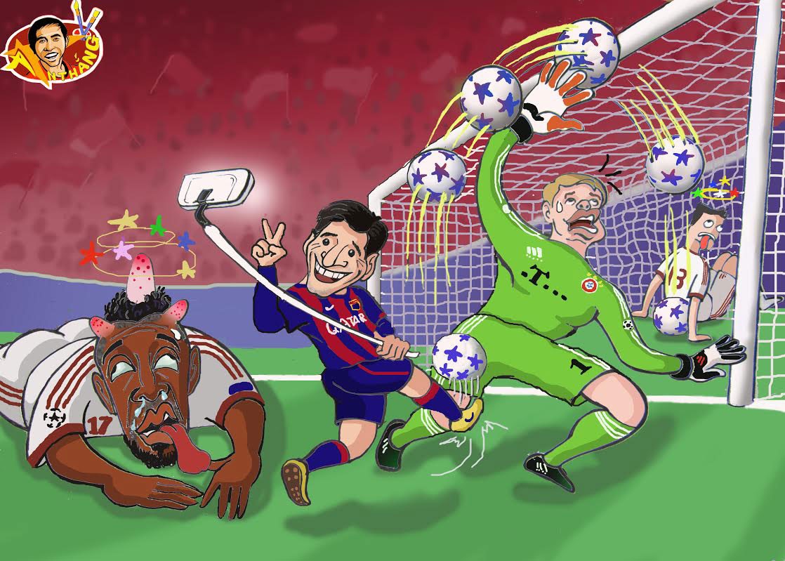 Bên cạnh danh hiệu cầu thủ xuất sắc, Messi nhận danh hiệu bàn thắng đẹp nhất châu Âu mùa 2014 - 2015. Bàn thắng là khoảnh khắc thiên tài của Messi, khi anh biến hàng thủ Bayern với Boateng, Neuer thành những gã hề bất đắc dĩ.