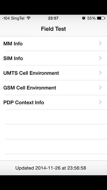 Bạn không cần phải cài thêm bất kỳ ứng dụng nào để thực hiện bài thử nghiệm này. Trước hết, hãy mở ứng dụng Điện thoại (Phone) trên iPhone và nhập vào số *3001#12345#* rồi nhấn nút gọi (Lưu ý nhập đầy đủ các dấu * và #). Khi bạn nhấn nút gọi, iPhone sẽ chuyển sang chế độ Field Test Mode. Bạn không cần phải để ý tới các tùy chọn trong menu này (dĩ nhiên, bạn có thể thử nếu muốn), nhưng hãy để ý các vạch sóng di động ở góc trên đã được đổi thành một số âm.
