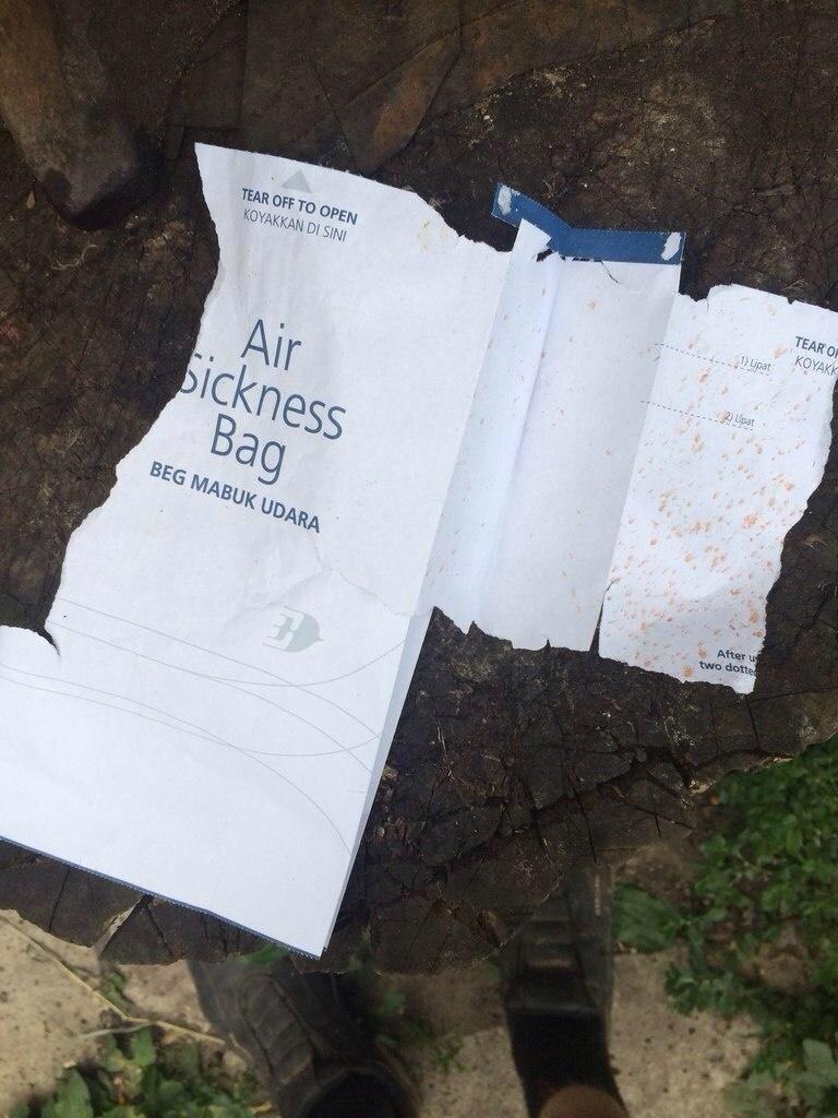 | Một túi nôn nằm lẫn trong những mảnh vỡ của máy bay. Ảnh: MSNBC |