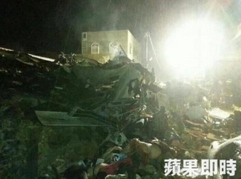 Lực lượng cứu hộ làm nhiệm vụ tại khu vực máy bay lao xuống. Ảnh: Focus Taiwan |