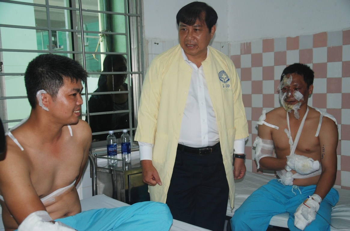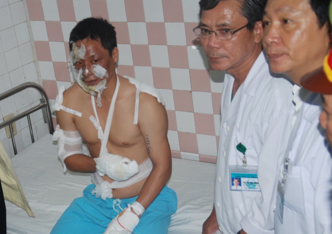| Có 15 chiến sĩ bị bỏng nặng (3 người bị gãy tay, chân) đang được điều trị tại Khoa bỏng Bệnh viện Đà Nẵng. Hai chiến sĩ bị thương nhẹ đã xuất viện. |