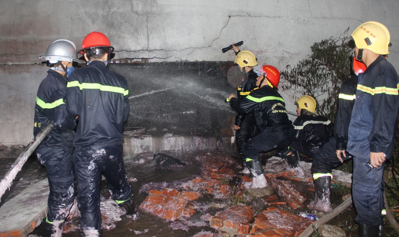 | Khi đang phun nước dập lửa, một số thùng phuy chứa hóa chất phát nổ khiến 17 chiến sĩ bị bỏng. Ngay lập tức, những người này được đưa đến Bệnh viện Đà Nẵng cấp cứu. |