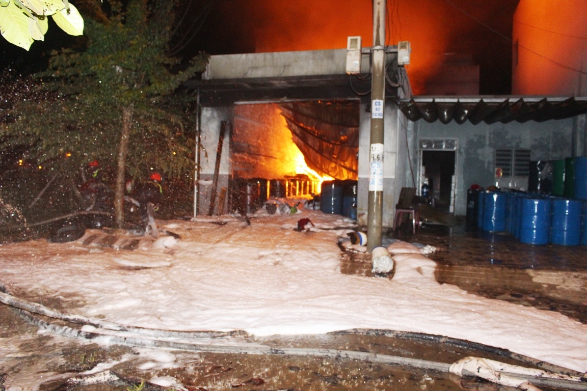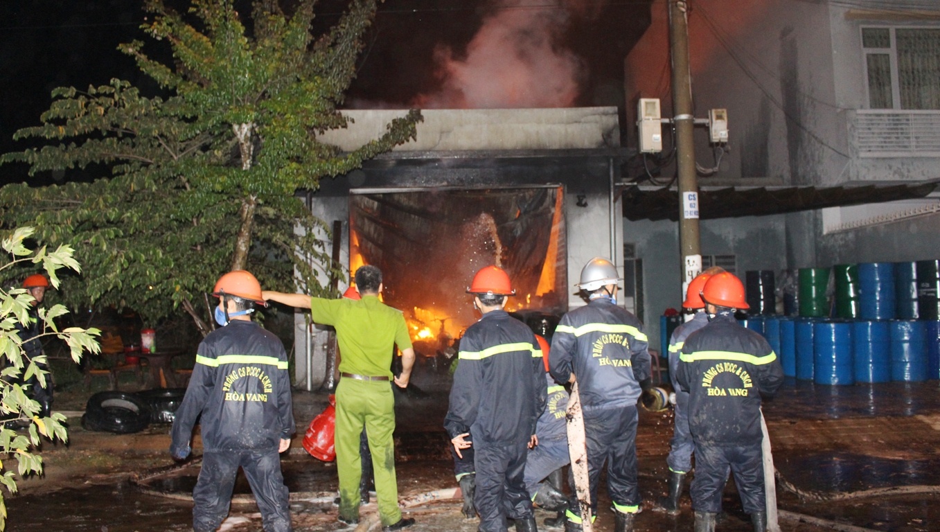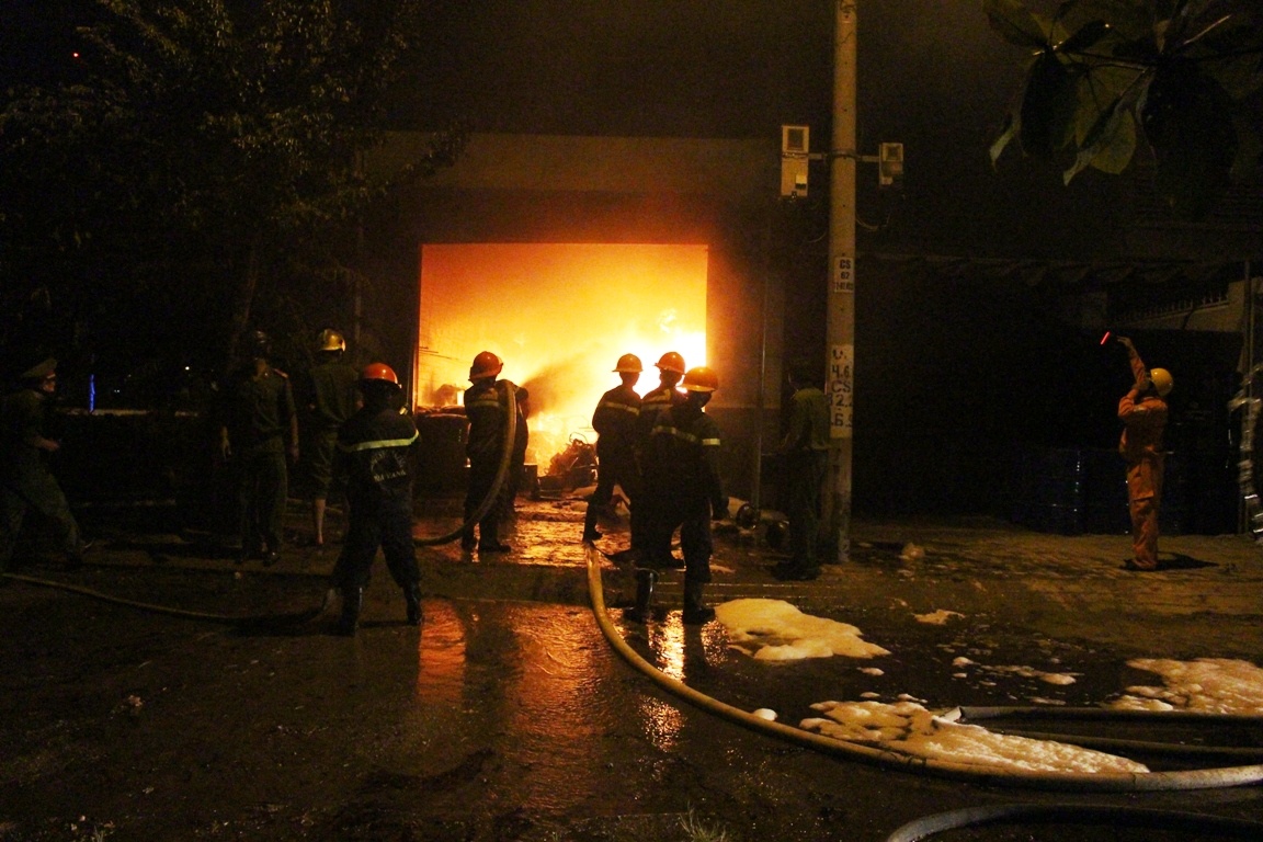 | Tối 6/5, tại xã Hòa Châu, huyện Hòa Vang, TP Đà Nẵng xảy ra một vụ hỏa hoạn lớn ở kho chứa hóa chất của một hộ dân. |