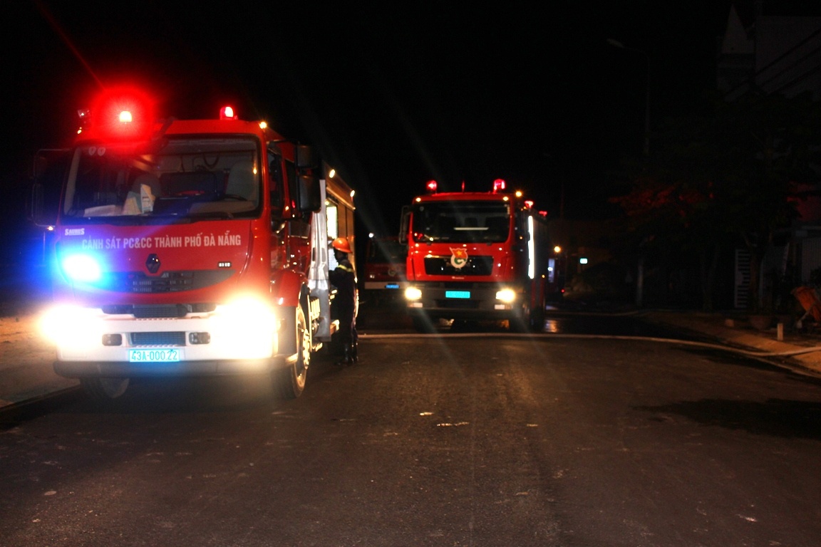 | Nhận được tin báo, Phòng cảnh sát PCCC số 5 (đóng tại xã Hòa Xuân, quận Cẩm Lệ) điều động 5 xe nước và hàng chục chiến sĩ đến hiện trường dập lửa. |
