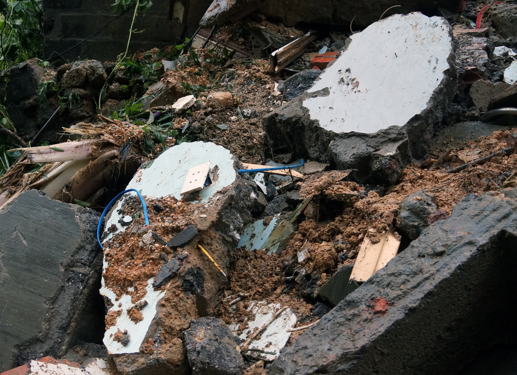 Tường nhà sập đổ rất khó khăn cho việc cứu hộ cứu nạn.
