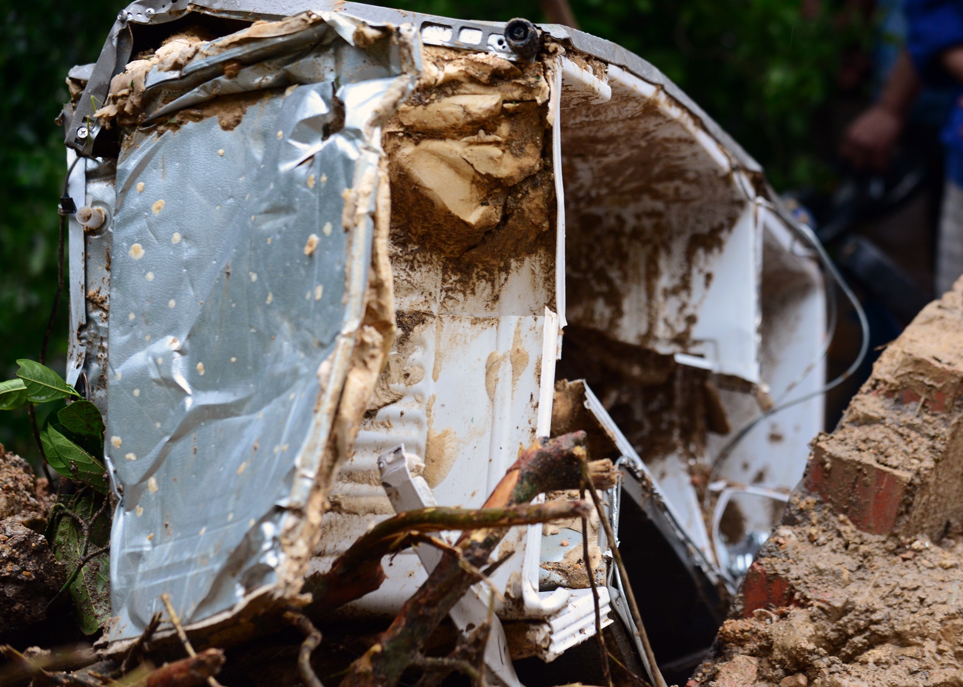 Chiếc tủ lạnh được lực lượng chức năng lôi ra khỏi đống đổ nát.
