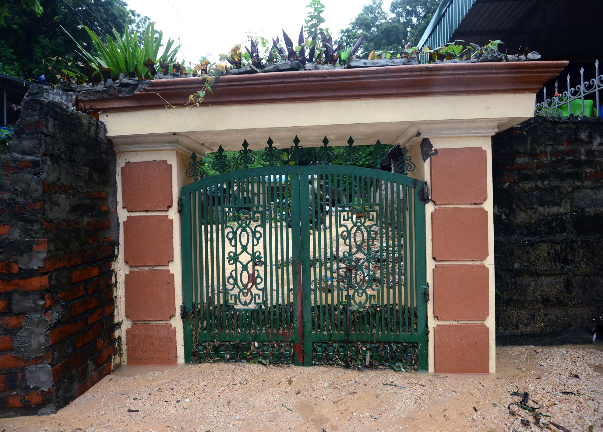 Phía cổng ngoài bị đất đá vùi lấp gần 1m.