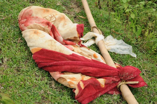 | Cáng khiêng nạn nhân trong vụ sạt lở còn sót lại. |