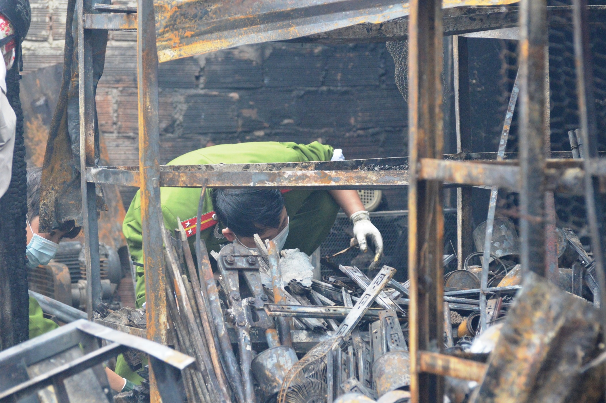 | Những hộ bị thiệt hại vẫn cố gắng bới tìm trong đống đổ nát những tài sản không kịp lấy đi. Nhiều người ngồi thẩn thờ nhìn số hàng hoá trị giá tiền tỷ của mình bị thiêu rụi. Trong ảnh: Ông Nguyễn Văn Sơn, người bị thiệt hại tiền tỷ sau khi số hàng hoá, điện máy bị cháy. |