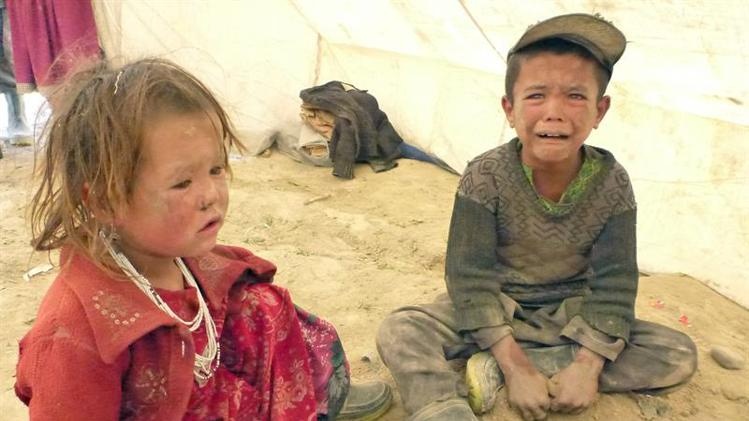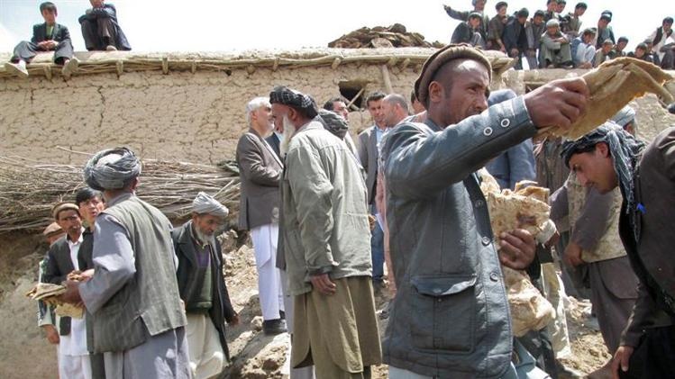 | Những người sống sót chờ hàng cứu trợ. Giới chức tỉnh Badakshan ở phía đông bắc của Afghanistan hôm xác nhận, tất cả hơn 2.100 người từ 300 gia đình tại làng Hobo Barik đã chết. Ảnh: EFE |