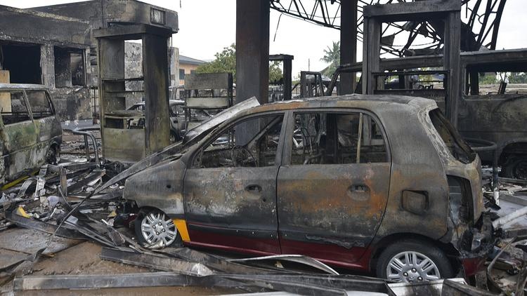 Rò rỉ nhiên liệu được cho là nguyên nhân gây ra vụ nổ. Chính phủ Ghana cho biết sẽ chi 12 triệu USD để giúp đỡ các gia đình nạn nhân. Ảnh: AFP |