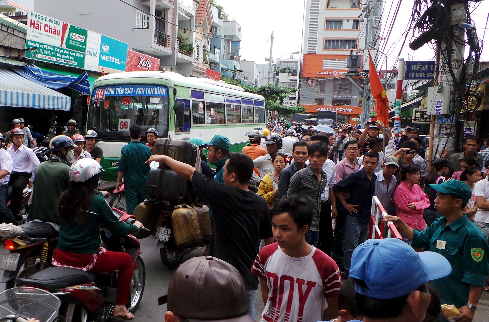 Người hiếu kỳ tập trung rất đông theo dõi khiến giao thông ùn tắc nghiêm trọng.