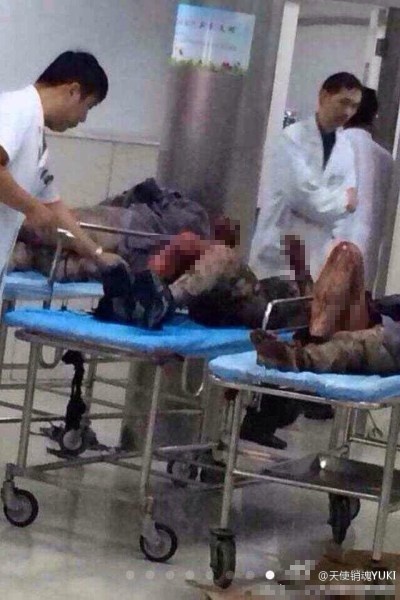 | Bác sĩ đang tiến hành kiểm tra cho các nạn nhân bị thương sau vụ nổ. |
