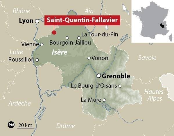 Nhà máy bị tấn công nằm gần thành phố Grenoble. Vụ nổ xảy ra lúc 10h sáng ngày 26/6 theo giờ địa phương. Ảnh: RT