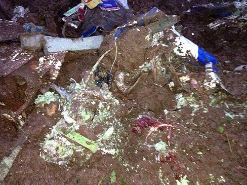 Nhiều mảnh vỡ nằm vương vãi trên bờ sông. Rất có thể chúng đã rơi ngay sau cú va chạm từ trên không. Ảnh: Thaiday.